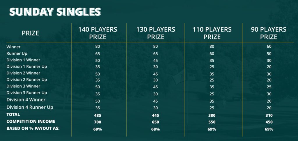 A minimum of 16 players must enter the Singles Matchplay in order for the competition to proceed, entries less than 16 will result in the cancelation of the competition.